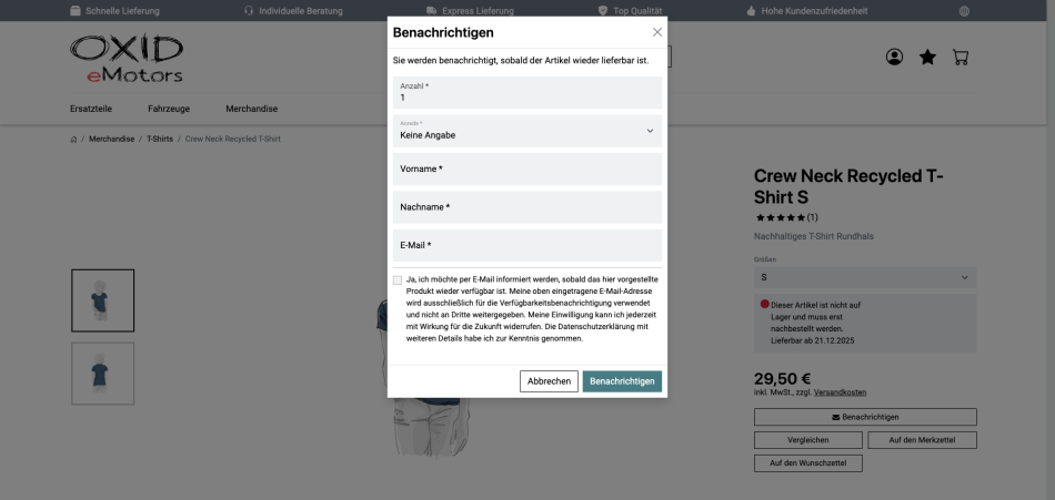 Artikel ausverkauft? Kein Problem – Informieren Sie Ihre Kunden, wenn er wieder verfügbar ist!