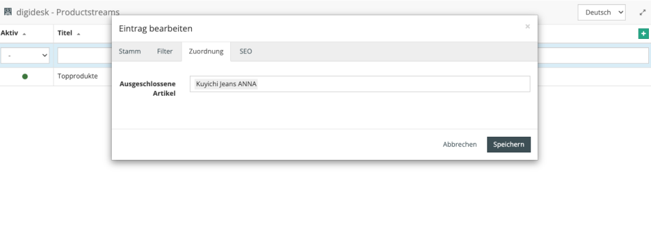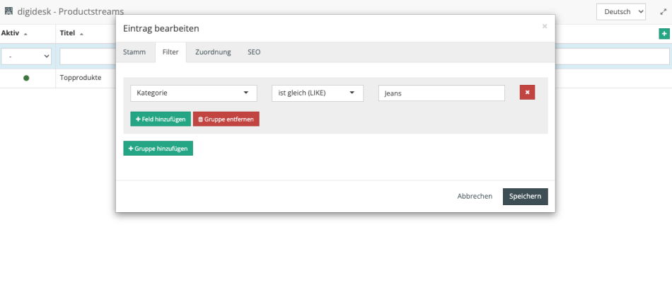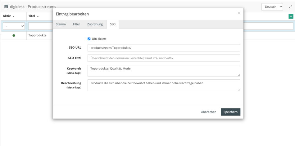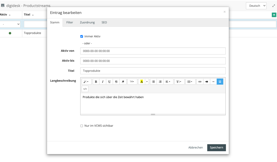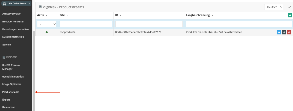 - Einfache Verwaltung der Productstreams im Backend
